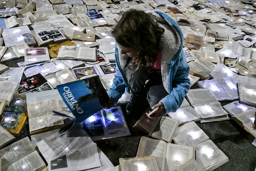 ‘Literatüre karşı Trafik’, anonim bir grup olan Luzinterruptus tarafından kamusal alanda sergilenmiş bir projedir. Son yaptıkları çalışma olan bu projede Toronto’nun en kalabalık caddelerinden birinde 10,000 kitabı sergilediler. Sonuç ise herkesi etkileyen mükemmel bir görsel şölendi.